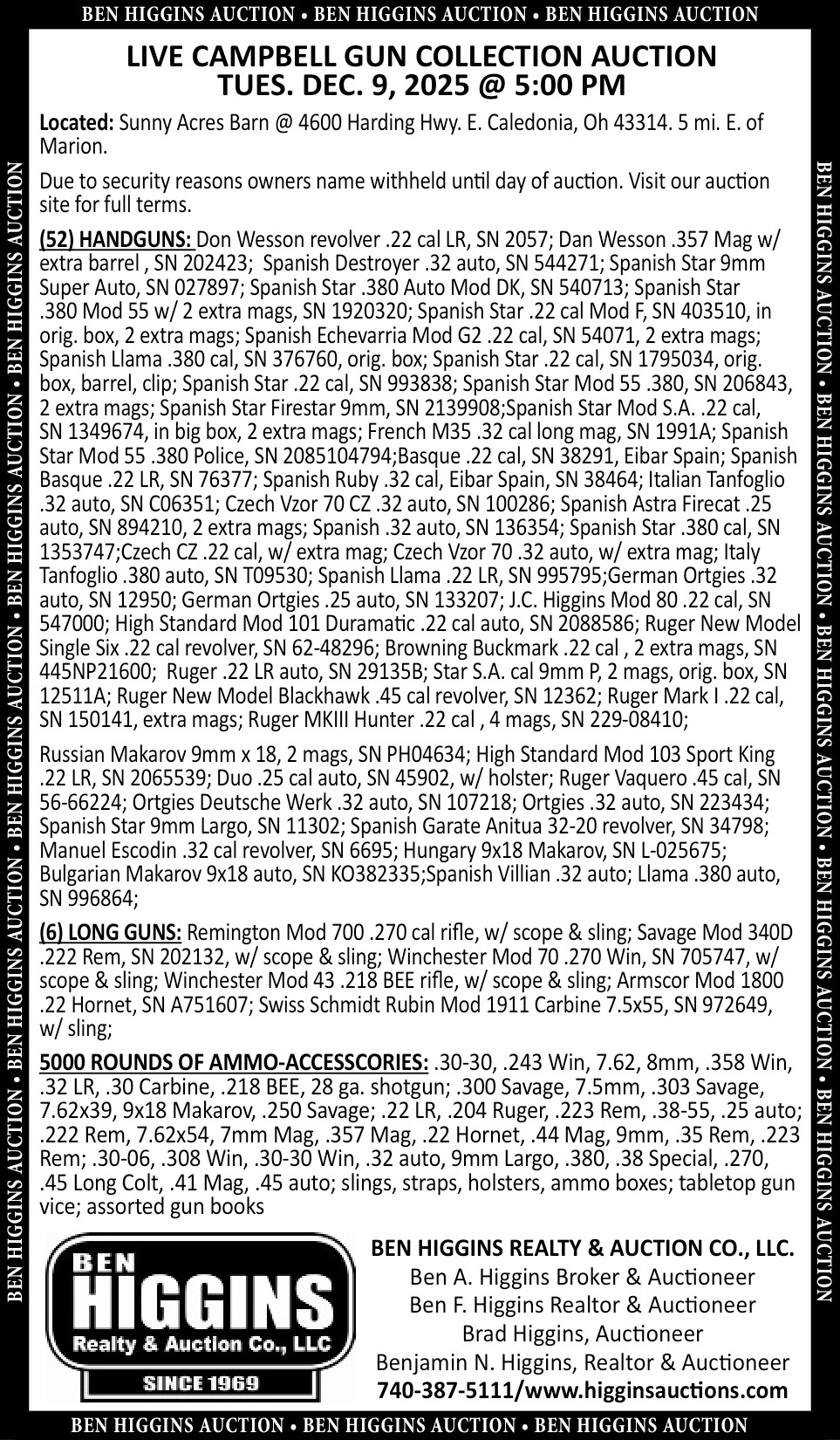 Ads for Ben Higgins Realty & Auction Co, LLC in Marion, OH